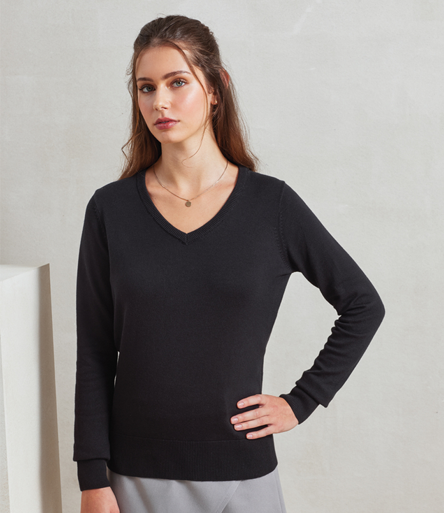 Premier Ladies Knitted Cotton Acrylic V Neck Sweater