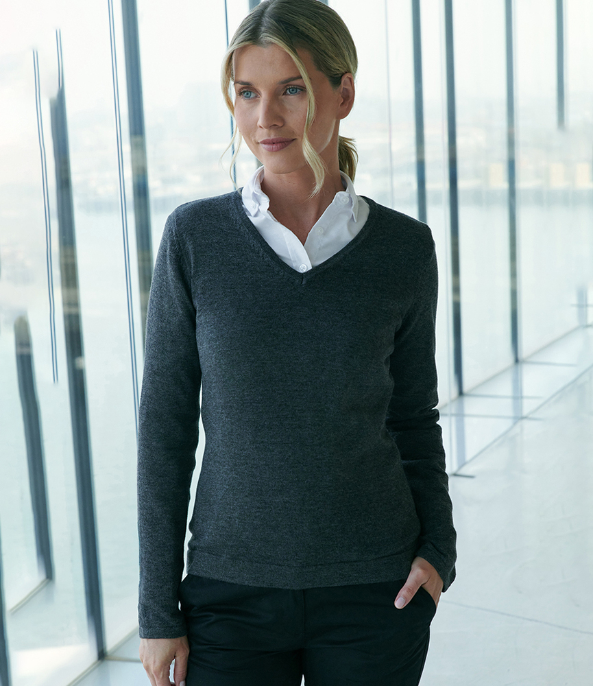 Henbury Henbury Ladies Lightweight Cotton Acrylic V Neck Sweater H721