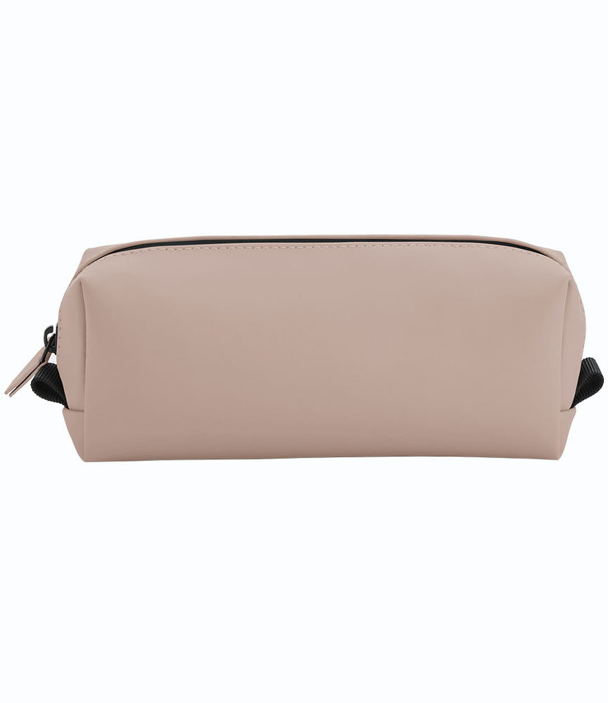 100% recycled polyester with matte-look PU coating. Minimalist styling.Main zip compartment.Rubberised zips.Multi-purpose use.Tear out label.Capacity 1 litre.
