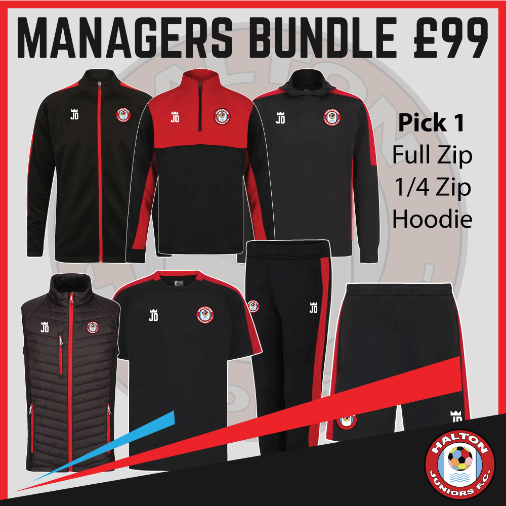 Our managers bundle come with the following items and the price includes printed club badge and your initials. please leave your intials in the box provided also we recommend getting a size down is shorts from the pants size these seem to fit better. just order your normal size for clothing as these are true to size.